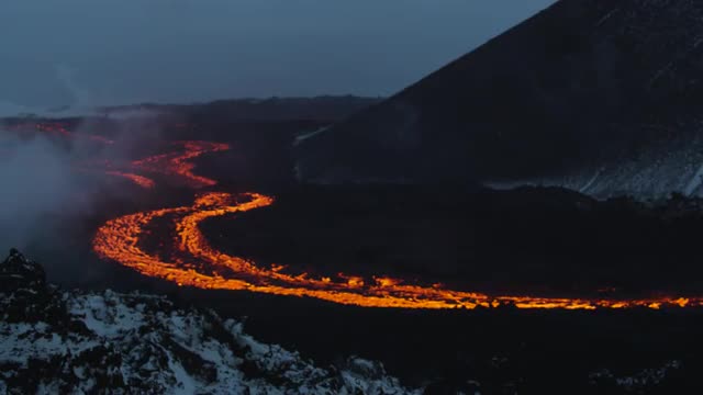 > Lava flowing during the night