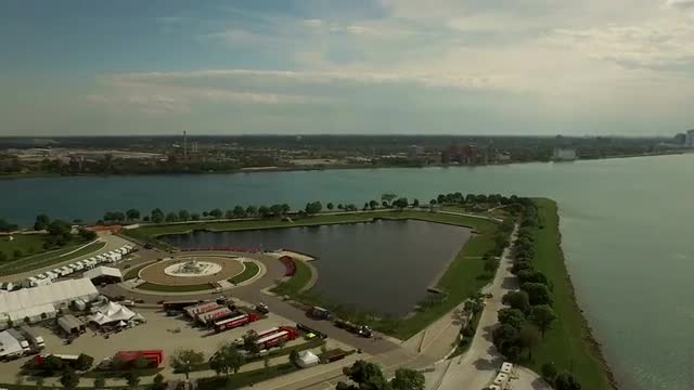v80 Flying low over Belle Isle panning left with cityscape views.