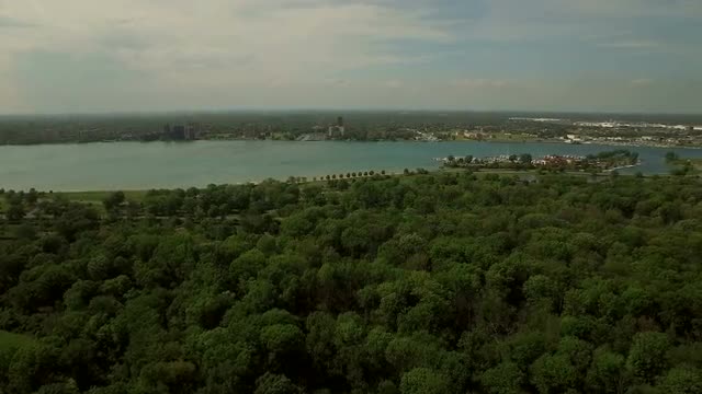 v75 Flying low backwards over Belle Isle panning right.