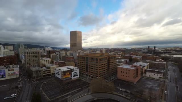 v3 Flying low over downtown Palm Springs at dusk.