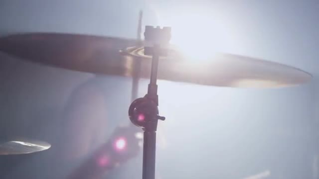 Man play drums, focus on cymbal