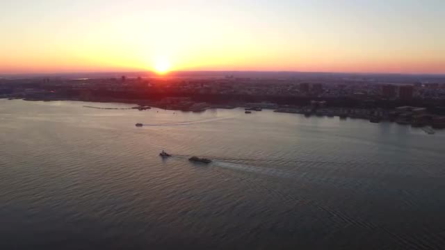 v10 Panning right with view of Hudson River and New Jersey cityscapes at sunset.