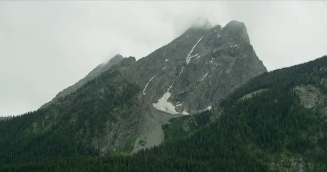 Slow moving shot of a mountain peak at Jackson Lake