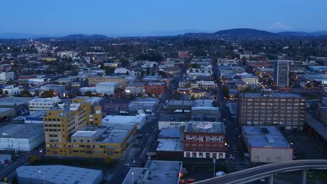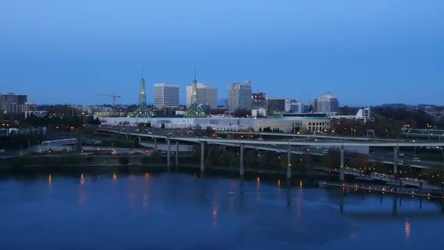 372772 - City of Portland, Oregon, USA aerial video at dusk: 4K Ultra HD