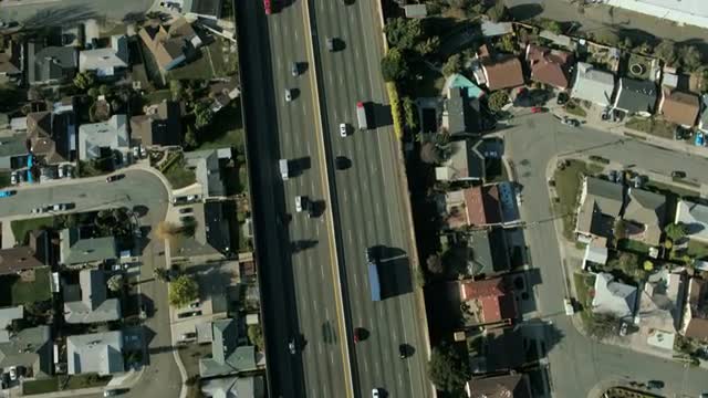 60807 - Aerial view of suburban traffic on a freeway in a city