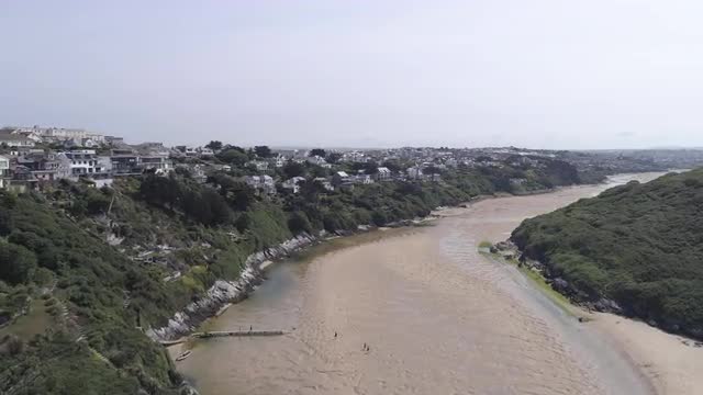1001279 - Aerial views over the Gannel Estuary, Newquay, Cornwall, UK