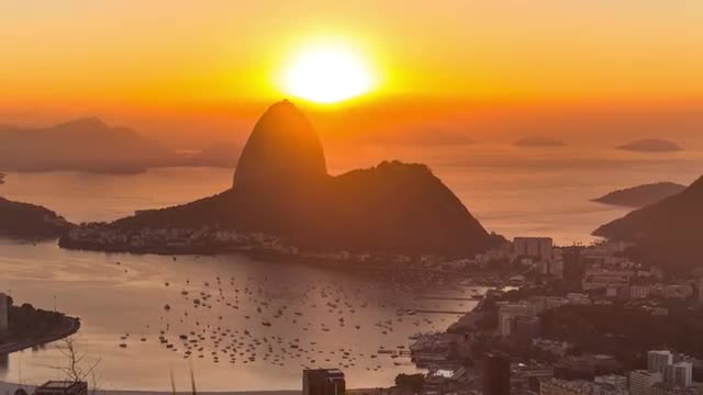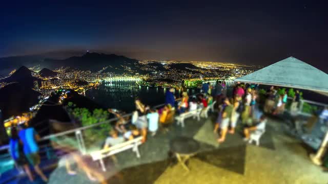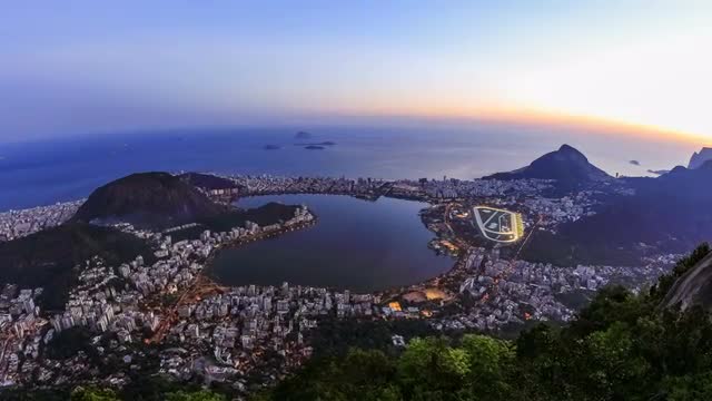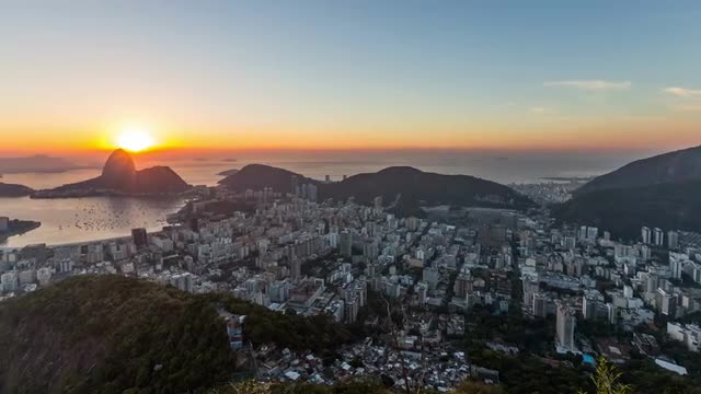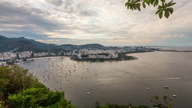v16. Rio De Janeiro cityscape panning time lapse at dusk from lower Sugar Loaf Mountain.