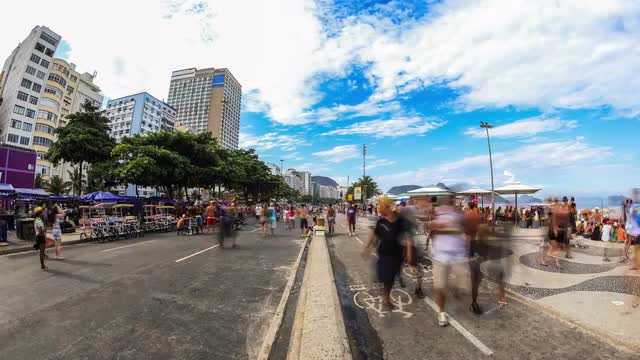 v113. City pedestrian traffic time lapse at Copacabana Beach in Rio De Janeiro, March 1st 2014.