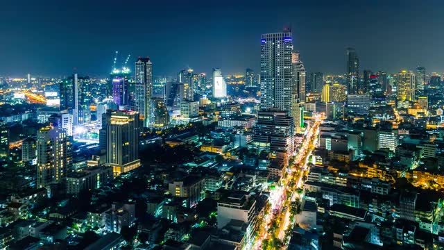 483902 - Night timelapse over the Bangkok city downtown, Thailand