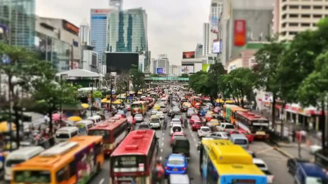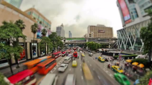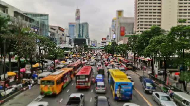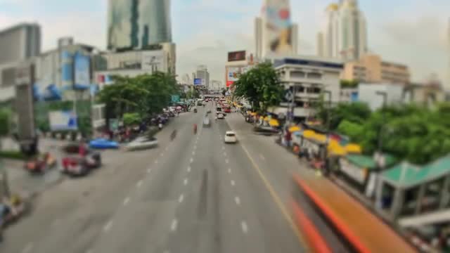v111. City pedestrian traffic time lapse of Victory Monument roundabout area in Bangkok, Thailand on February 8th 2014.