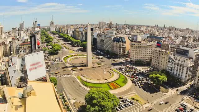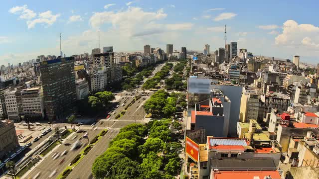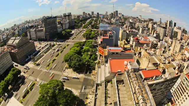 v77. City traffic time lapse of Buenos Aires cityscape and streets from above.