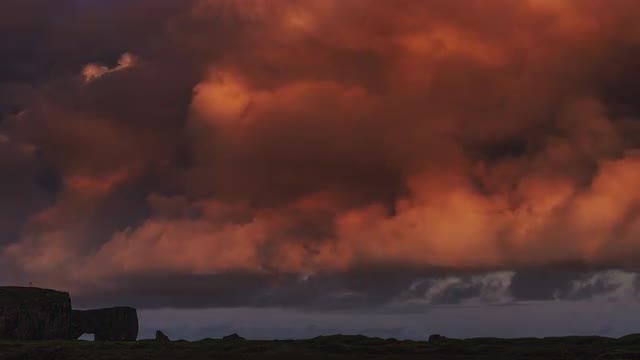 28500 - Epic red clouds over a peninsula / Iceland / 4K