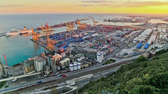 749800 - spain day time barcelona working port panorama 4k