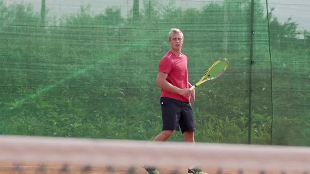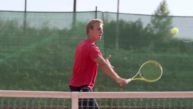 233589 - Slow Motion Of Young Tennis Player Practicing Backhand
