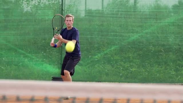 233618 - Slow Motion Of Professional Tennis Player Hitting The Ball With Tennis Racket