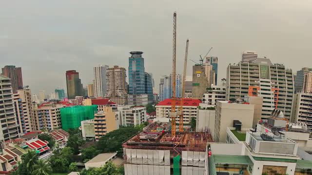 v4. Panning time lapse of Bangkok cityscape and construction during sunset using HDR effect.