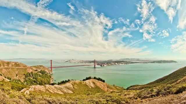 v7. Beautiful wide time lapse of Golden gate bridge area and cool clouds using an HDR effect and fisheye lens.