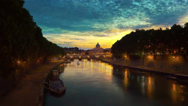 91072 - Vibrant sunset time-lapse of the Vatican City, from across the Tevere River.
