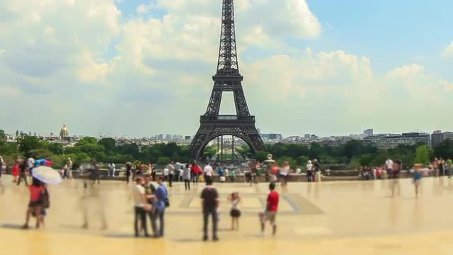> City Pedestrian Traffic Time Lapse Eiffel Tower Fisheye Pan