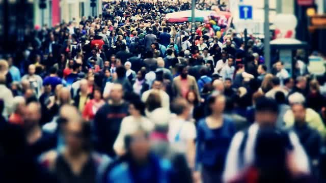 v58. Slow motion city pedestrian traffic shot on a busy Brussels shopping street with added color correction.