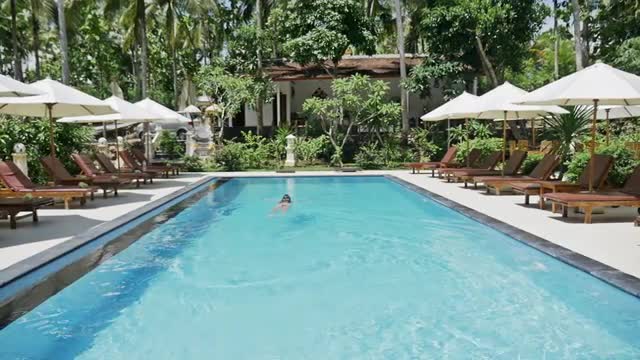 677480 - Girl Swimming Pool Tropic Palms Sunny Slowmotion