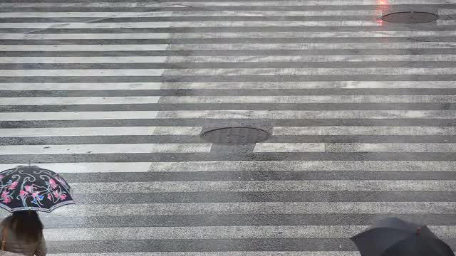 v44. Foot traffic of people walking by in the city and crossing the street.