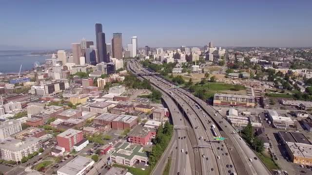 v1. Seattle highway driving time lapse clip using a cartoon like video effect.