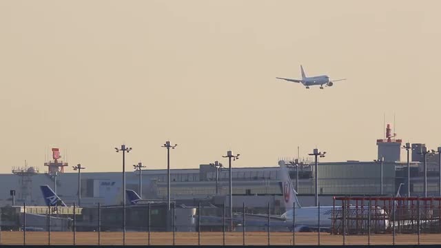 548066 - Airplane landing at Haneda airport in Tokyo, Japan