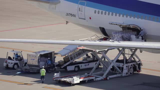 548792 - Airplane being loaded at Tokyo International Airport, Tokyo, Japan