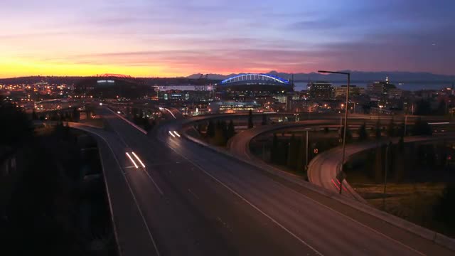 v1. Time lapse clip of Seattle freeway traffic during sunset.