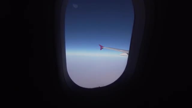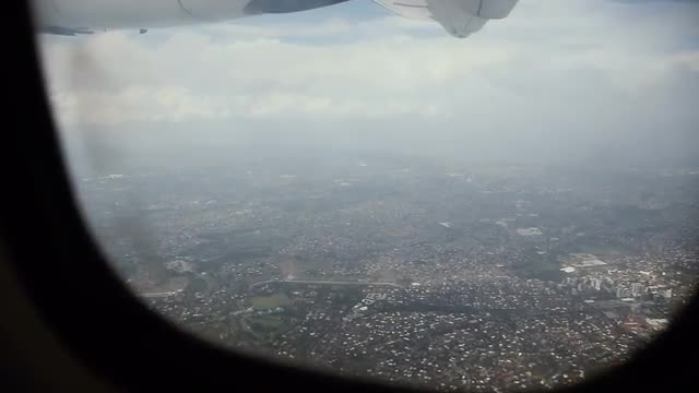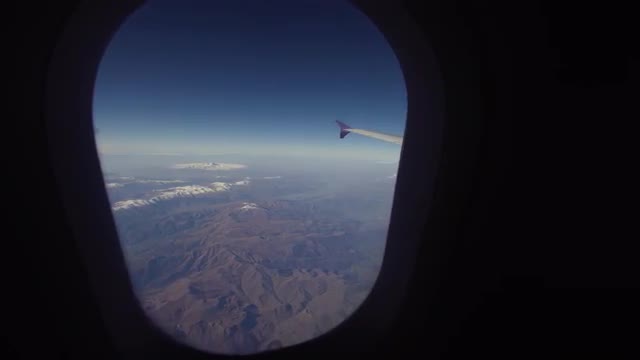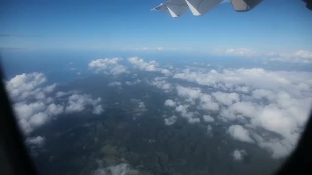 Shot while flying in a plane in the rear left side. UHD 4K shot. View of from the left window in the back side of the plane. The airplane wing can be viewed.