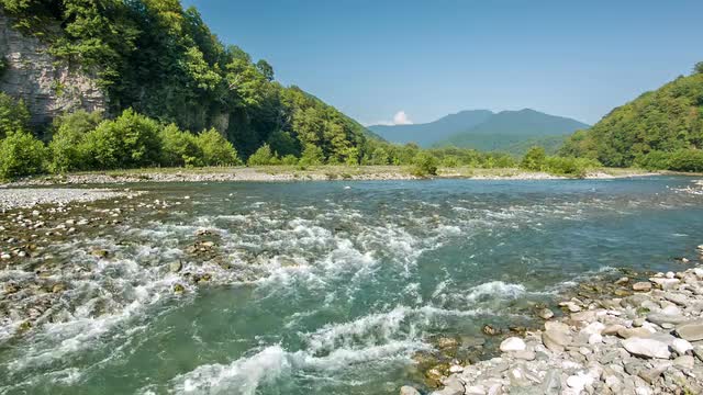 180665 - The Grand Teton mountains are reflected in a mountain river.