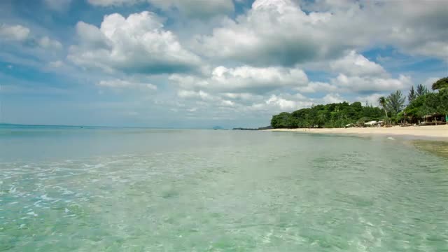 Wild sand beach with trees and rocks