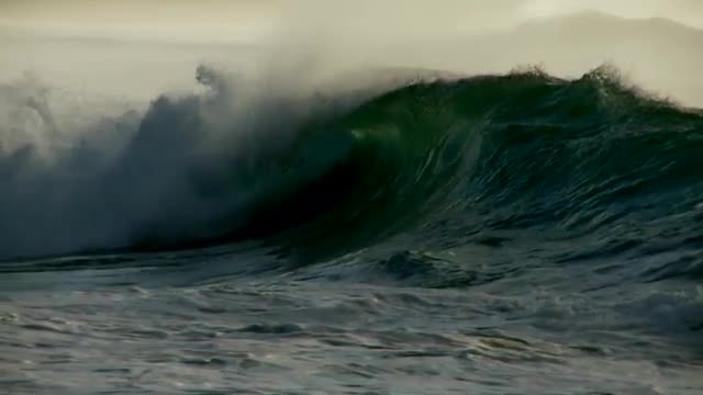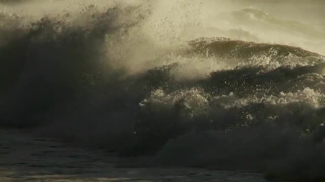 > 1971: Wave crashes on rocky shoreline almost hitting bystanders.