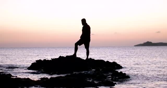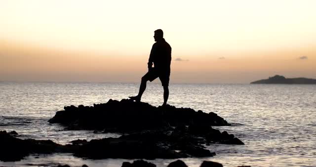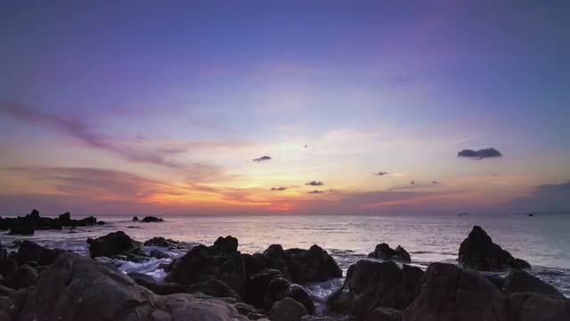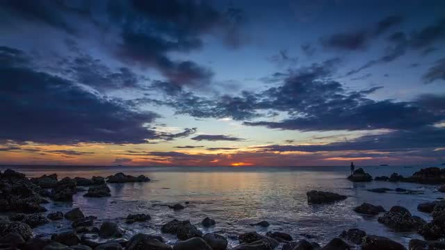 Calm sea at sunset rocks beach