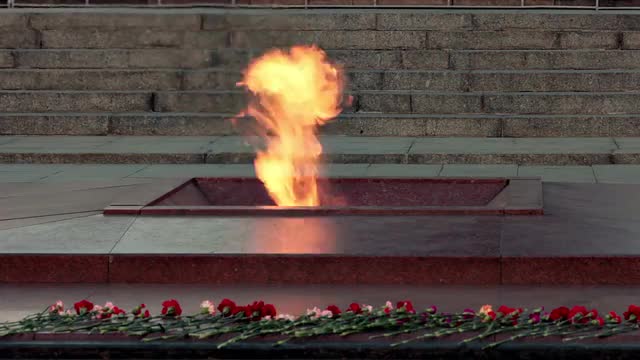 Night Shot of Obelisk in Victory Square and Eternal Flame in Center of Minsk, Belarus