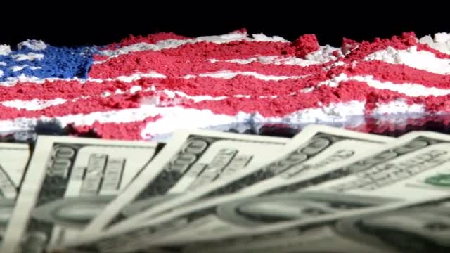 754116 - WS POV AERIAL ZI US flag swaying on naval ship docked in Mississippi river / United States