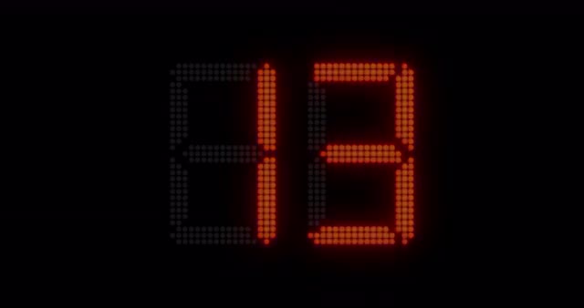 Sports shot clock countdown from 27 to 0. Glowing LED digits with time lag and afterglow. (av23183c)