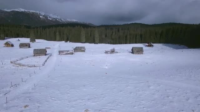 4K aerial video showing mountain lake