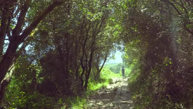 1100994 - Advance through leafy path. Point of view