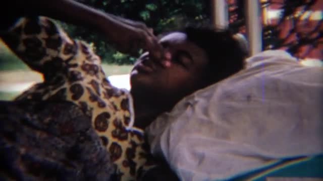 462324 - 1969: African American girl itching her nose white laying down.