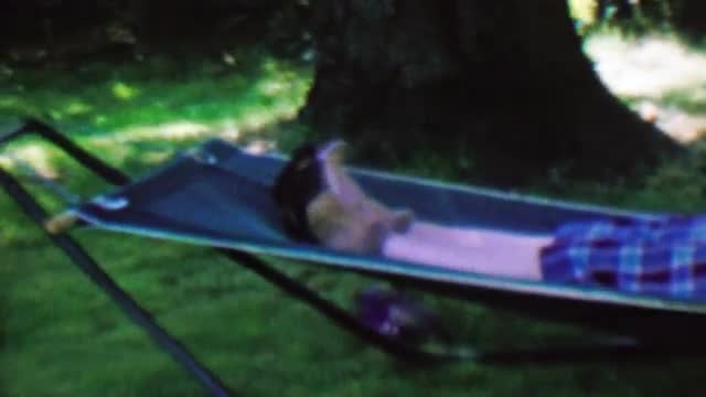 535883 - 1962: Grandma resting outdoor summer shade hammock.