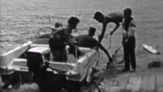 537281 - 1962: Powerboat landing family helps dock safely.