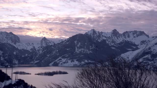 1078261 - Clouds flowing at sunset over the rocky mountains 8K timelapse
