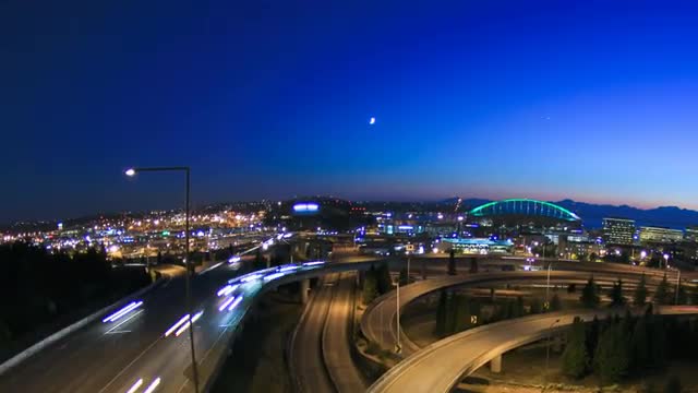 Seattle Cityscape Time Lapse Dusk Pan