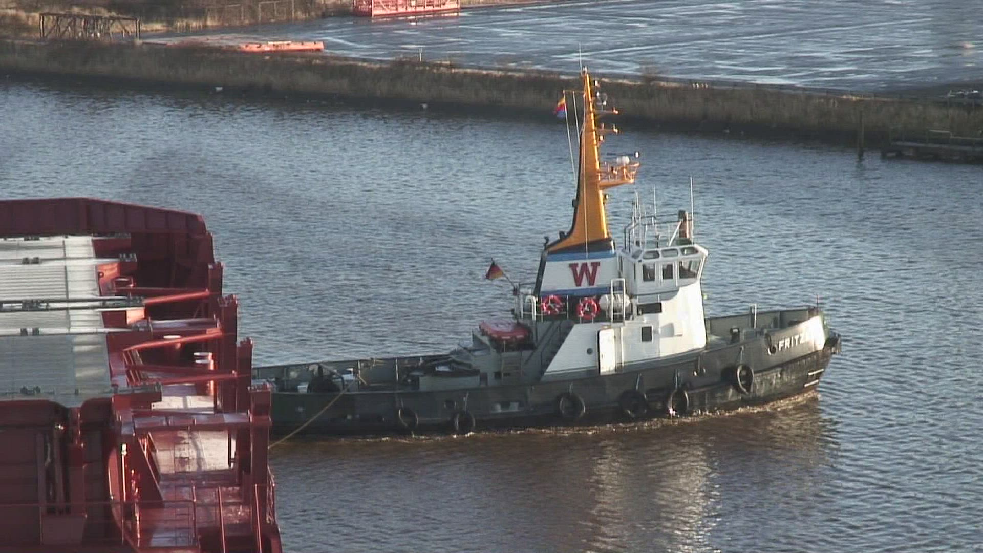 v1. Tanker ship in Vancouver Harbour passing by.