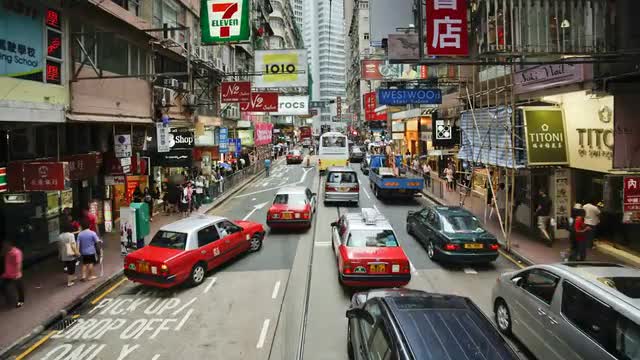 369419 - POV - Trams which run in Central Hong Kong Island along Connaught Road, China, Asia - T/Lapse