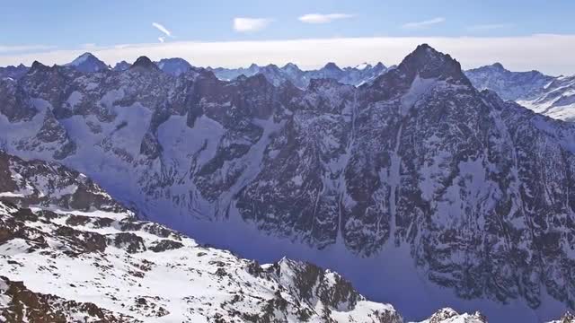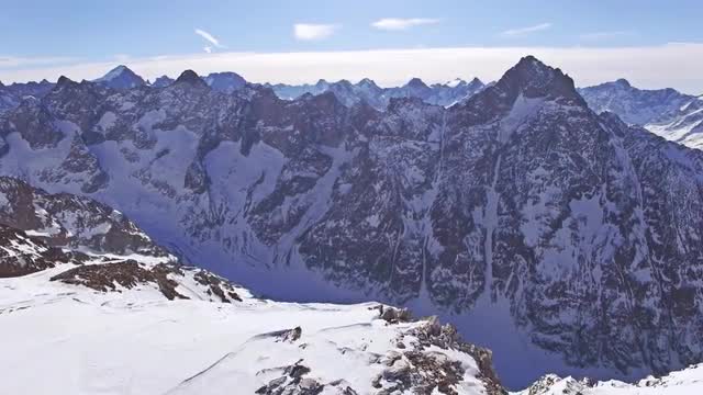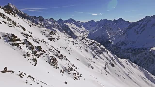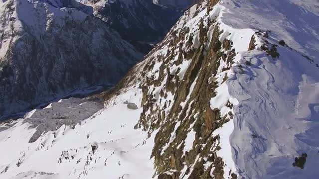 Aerial of a rocky mountain and slopes behind. This is a 4k video.