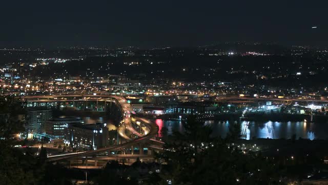v4. Time lapse of I-5 Marquam bridge traffic at night.