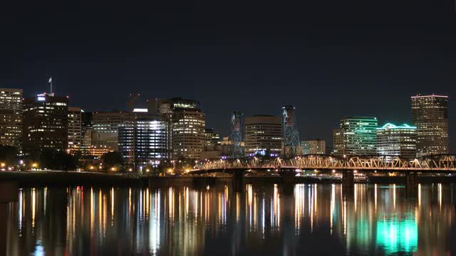 v4. Portland cityscape time lapse at dusk into night.